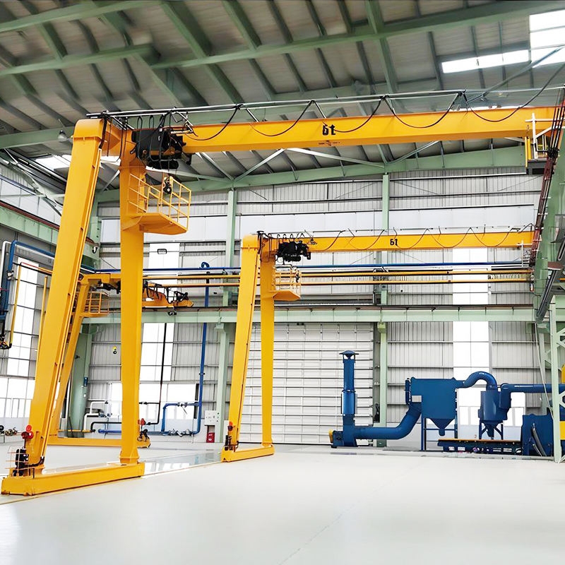 主要由單主梁、支腿、下橫梁、電動(dòng)葫蘆、運(yùn)行機(jī)構(gòu)和電氣系統(tǒng)組成