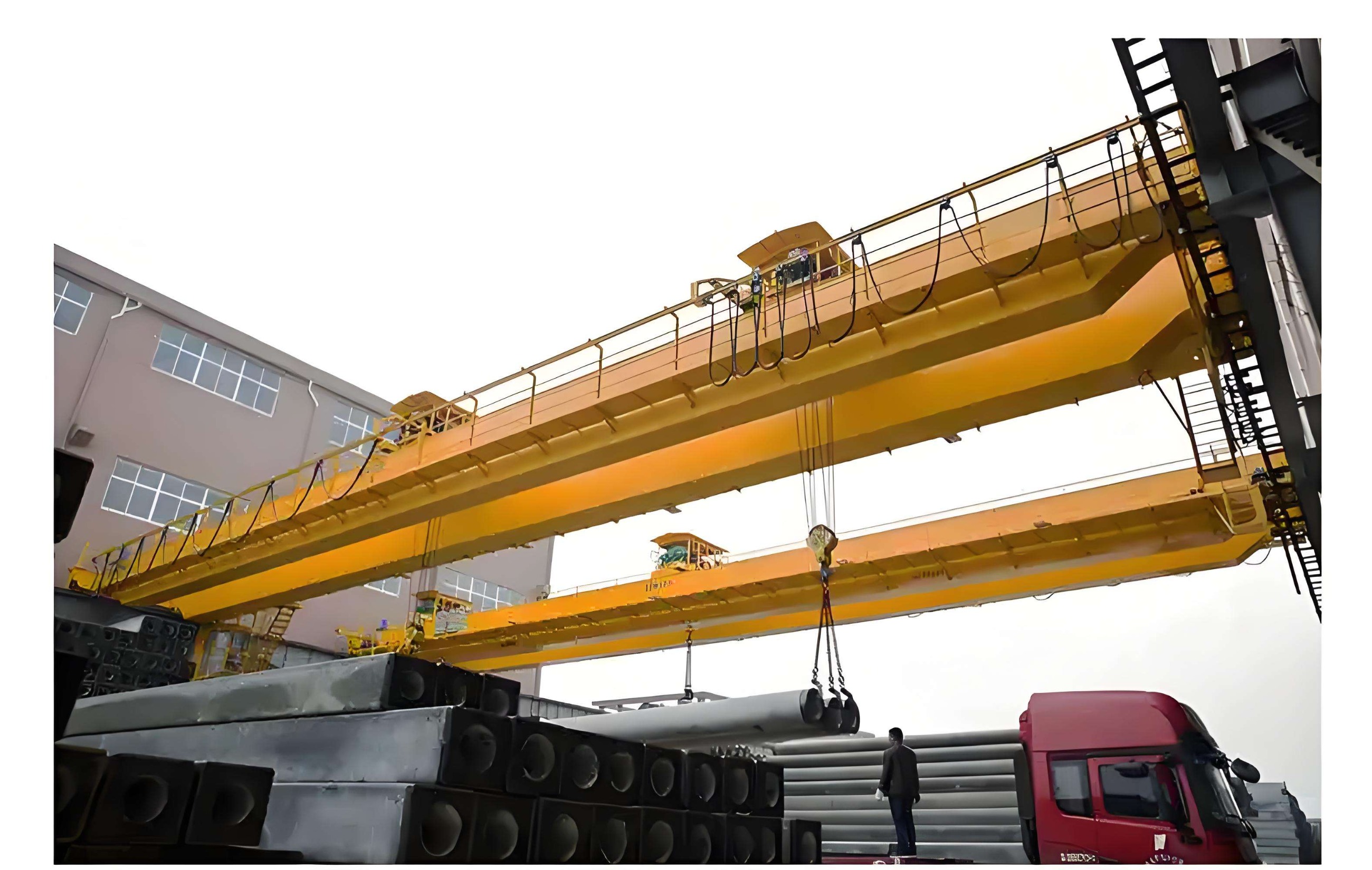 是依靠沿廠房軌道方向的縱向移動、小車的橫向移動和吊鉤的升降運(yùn)動來進(jìn)行工作。