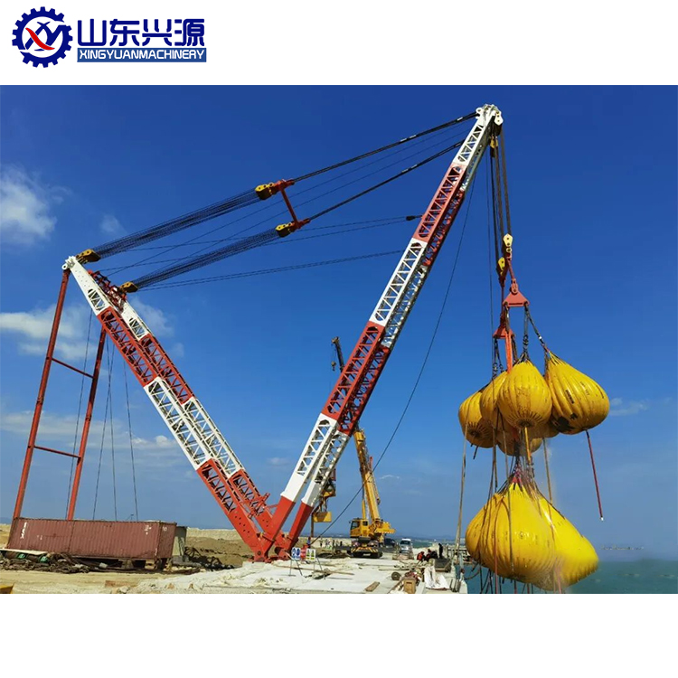 由兩根桅桿在頂部鉸接成 “人” 字形,底部分開固定,穩(wěn)定性優(yōu)于獨(dú)腳桅桿,無需額外纜風(fēng)繩(或僅需少量輔助纜風(fēng)繩)。適配場(chǎng)景:橋梁吊裝、重型設(shè)備進(jìn)場(chǎng),額定起重量 5~30t。