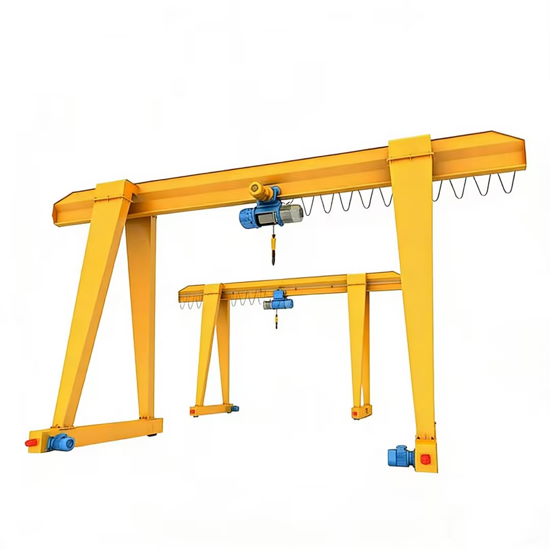 MH 型電動葫蘆門式起重機(jī)是一種中小型單主梁門式起重機(jī),采用電動葫蘆作為起升機(jī)構(gòu),在地面軌道上運(yùn)行的橋架型起重設(shè)備。名稱中 "M" 代表門式,"H" 代表葫蘆式 (電動葫蘆)。