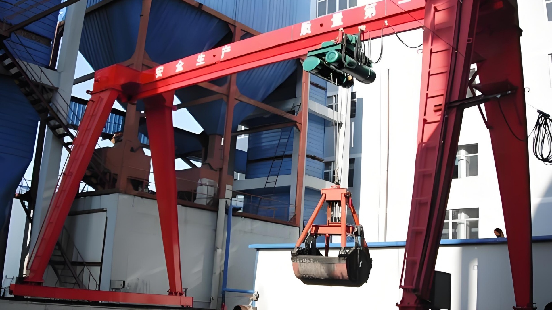 雙電動(dòng)葫蘆:通過特制鋼架連接,同步驅(qū)動(dòng)實(shí)現(xiàn)抓斗升降與開閉