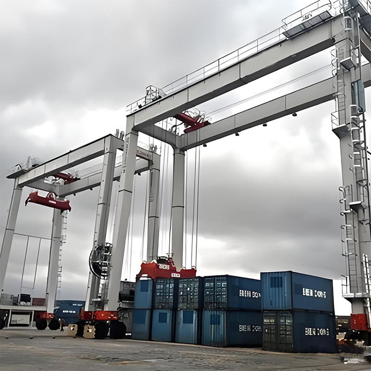 采用雙主梁箱型結(jié)構(gòu)或桁架結(jié)構(gòu),主梁跨度覆蓋 6~8 列集裝箱加 1 條車道(常規(guī)跨度 20~30m),堆垛高度可達(dá) 4~7 層集裝箱 + 底盤車高度;門架兩側(cè)設(shè)有剛性支腿,保證整機(jī)穩(wěn)定性,部分機(jī)型配備柔性支腿,適應(yīng)小范圍地面沉降。