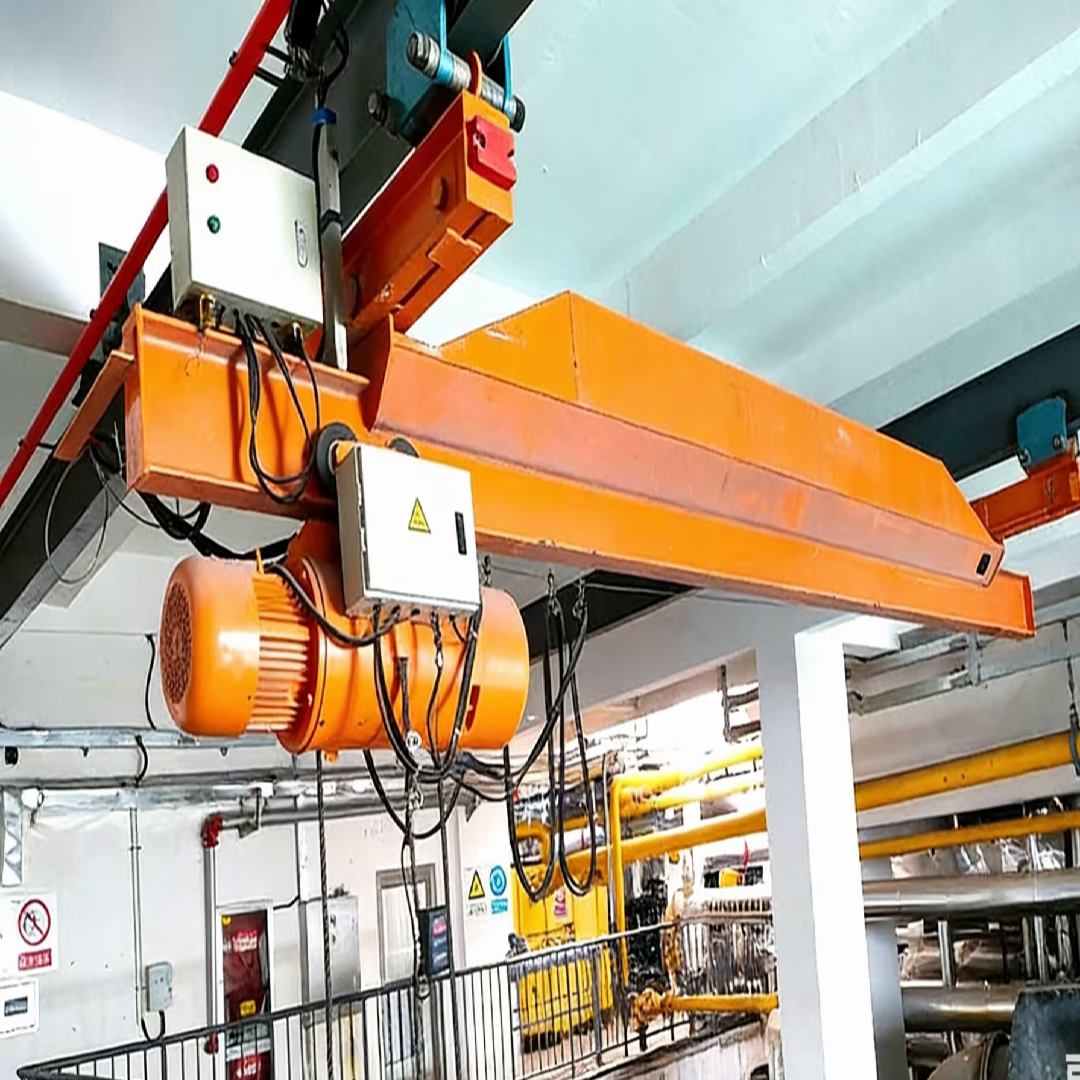 懸掛裝置:通過車輪組直接懸掛在廠房頂部的工字鋼軌道上,車輪與軌道間隙 3-5mm,確保運行平穩(wěn)